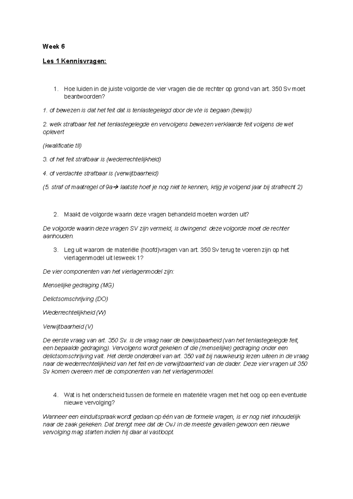 Kennisvragen Week 6: Art. 350 Sv en Het Vierlagenmodel - Studeersnel