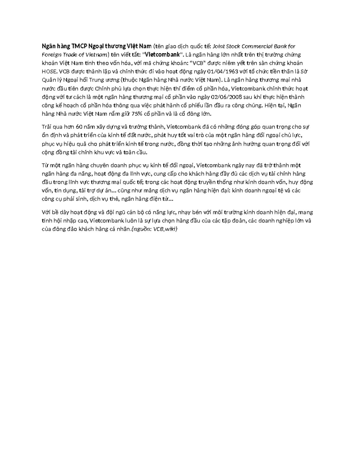 Giới thiệu Ngân hàng TMCP Ngoại thương Việt Nam (VCBb) - Studocu