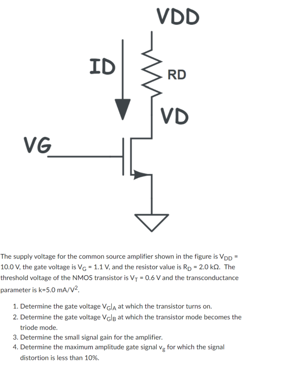 Solved VDDThe supply voltage for the common source amplifier | Chegg.com