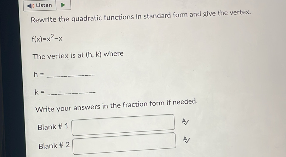 Solved: Listen Rewrite the quadratic functions in standard form and ...