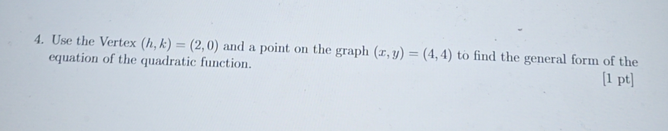 Solved: Use the Vertex (h,k)=(2,0) and a point on the graph (x,y)=(4,4 ...