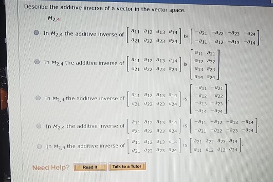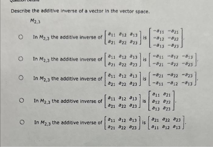 Solved 2. [-/1 Points] DETAILS Describe the additive inverse | Chegg.com