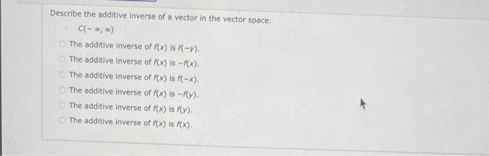 Solved Describe the additive inverse of a vector in the | Chegg.com