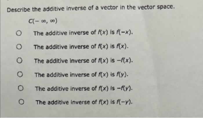 Solved test vector space axiom 5 ( additive inverse) is | Chegg.com