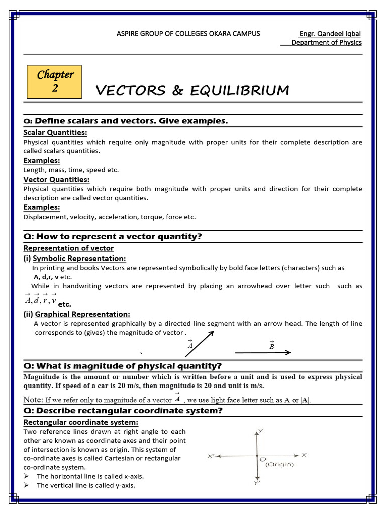 SOLUTION: Vectors equilibrium ch 2 physics notes - Studypool