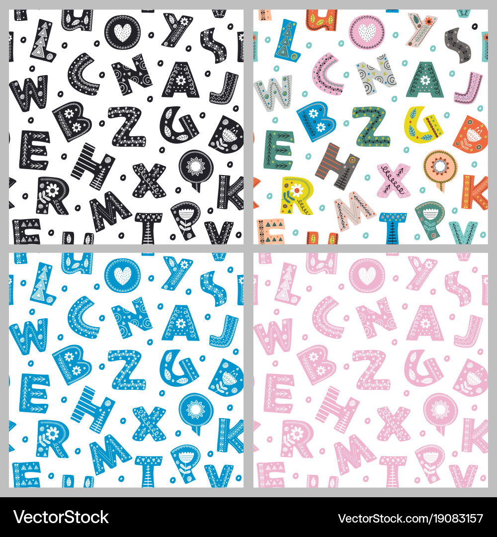 Collection of seamless alphabet patterns Vector Image