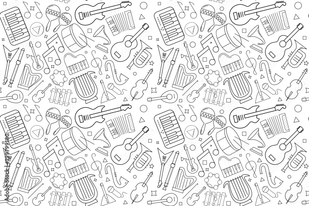 seamless pattern Vector music pattern with Musical instruments . Hand ...