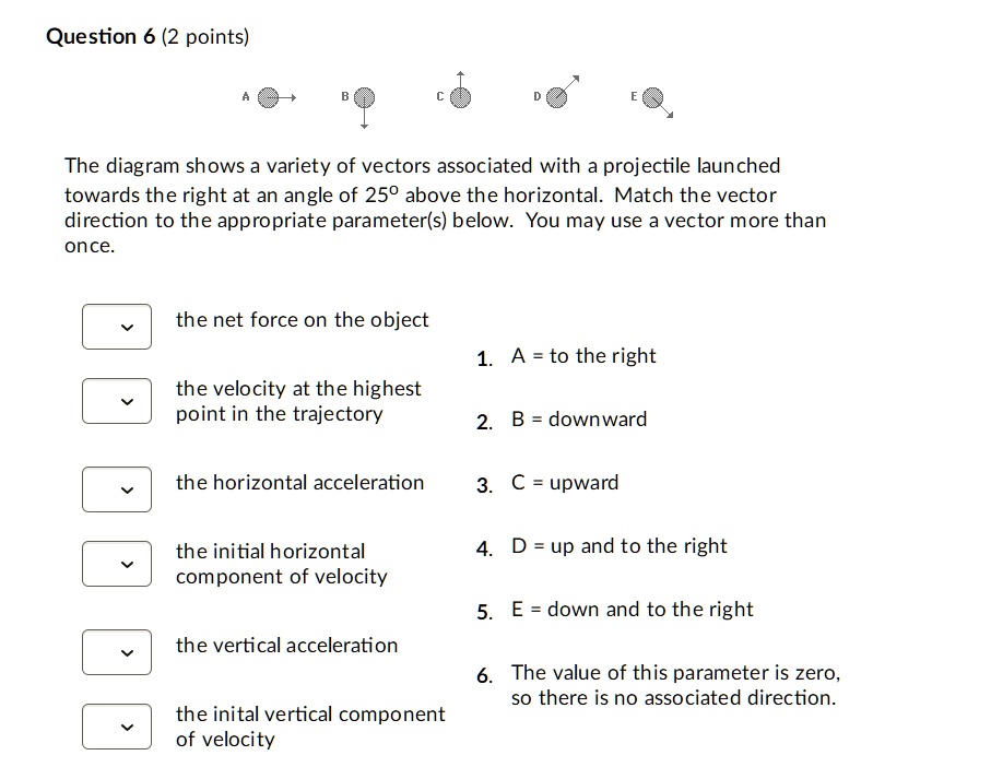 Question 6 (2 points) The diagram shows a variety of vectors associated ...