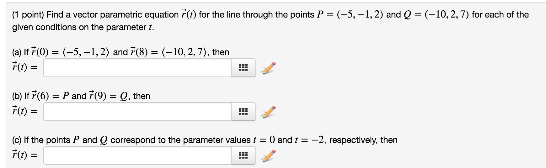 Solved (1 point) Find the vector and parametric equations | Chegg.com