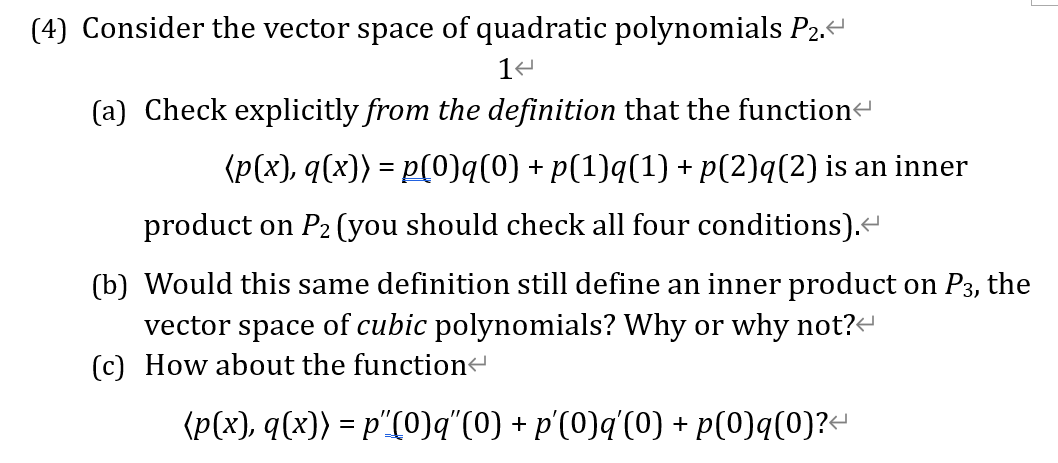 Solved For the vector space of 2 nd degree polynomials P2, | Chegg.com