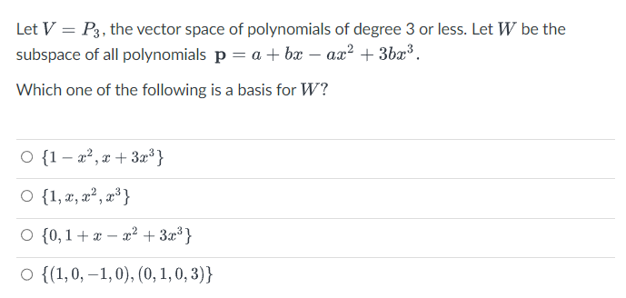Solved (a) The vector space P3 consists of all polynomials | Chegg.com