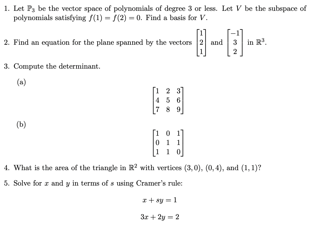 SOLVED: point) Let V be the vector space [3 [x] of polynomials in x ...