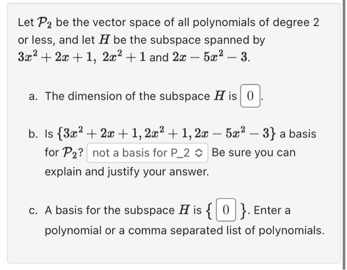 Polynomial vector spaceThe set P2 of polynomials of | Chegg.com