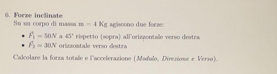 Risolto:Forze inclinate Su un corpo di massa m=4Kg agiscono due forze ...