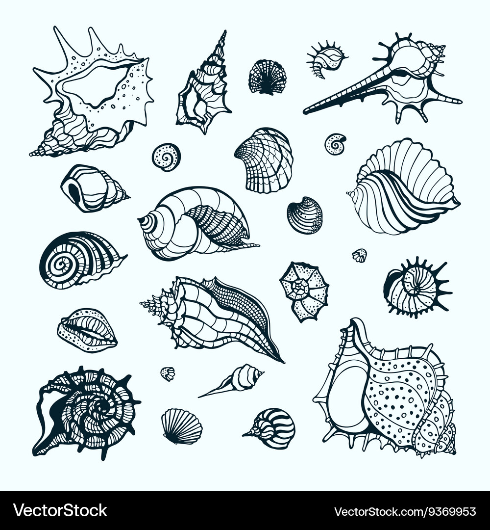 Set of sea shells Royalty Free Vector Image - VectorStock