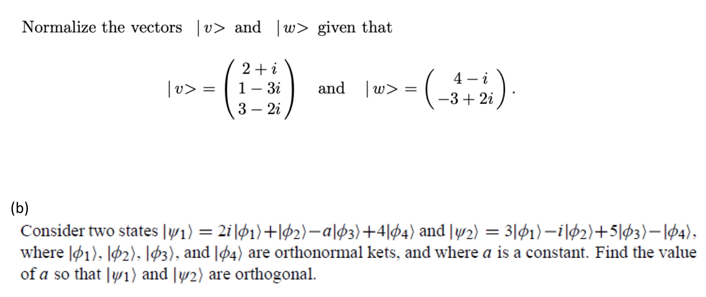 Solved Consider the following state vectors Normalize each | Chegg.com