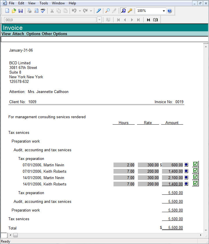 Sample CaseView invoice