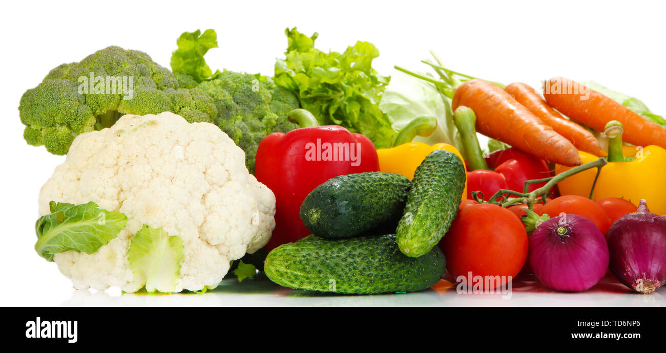 A collection of various vegetables placed on a white background Stock ...
