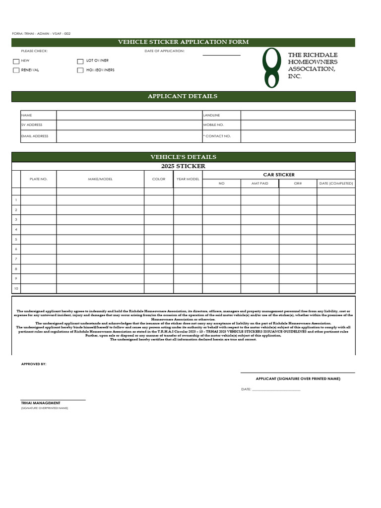Vehicle Sticker Application Form | PDF | Condominium | Corporations