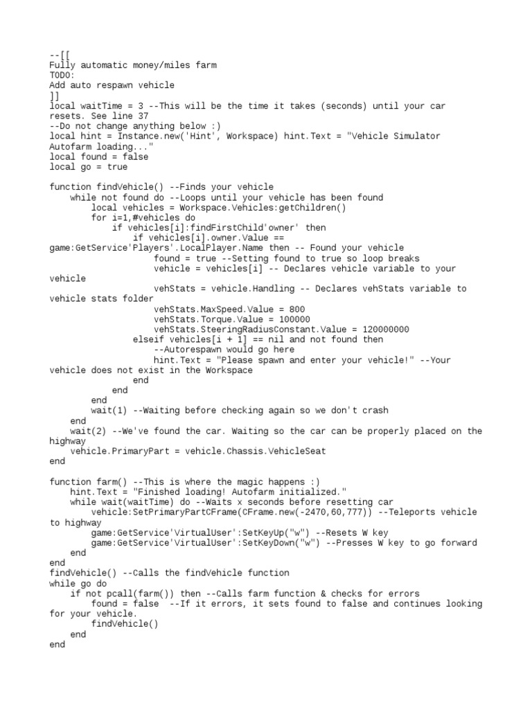 Vehicle Simulator Autofarm Script | PDF | Computers