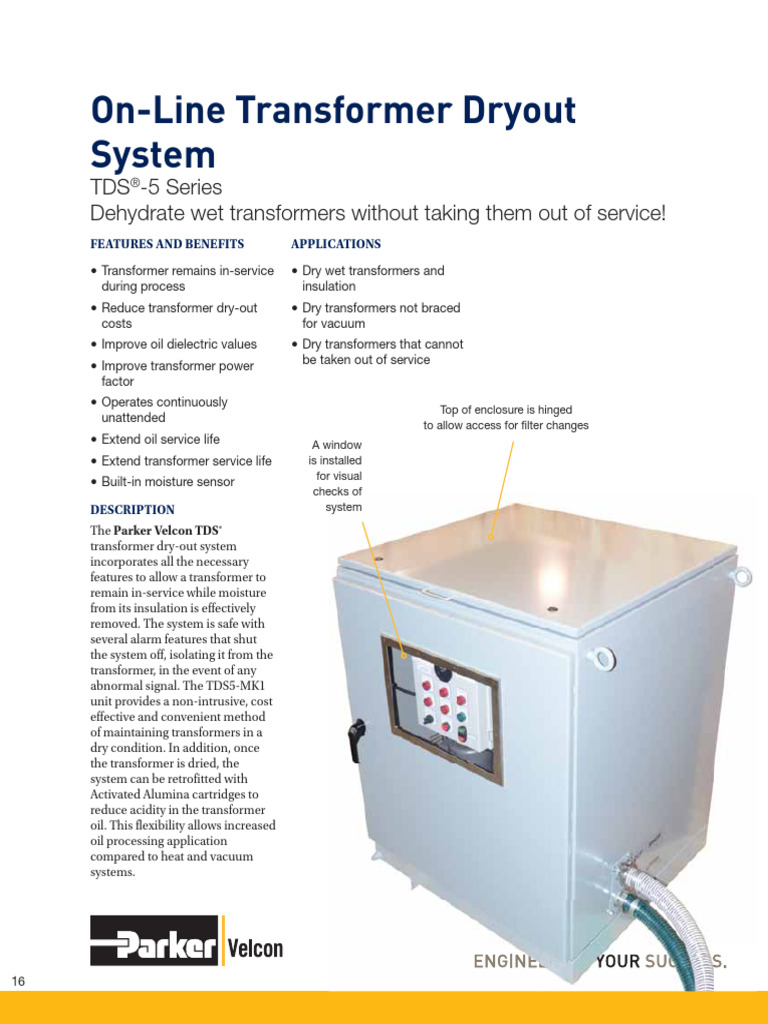 Parker Velcon TDS 5 Series On Line Transformer Dryout System Datasheet ...