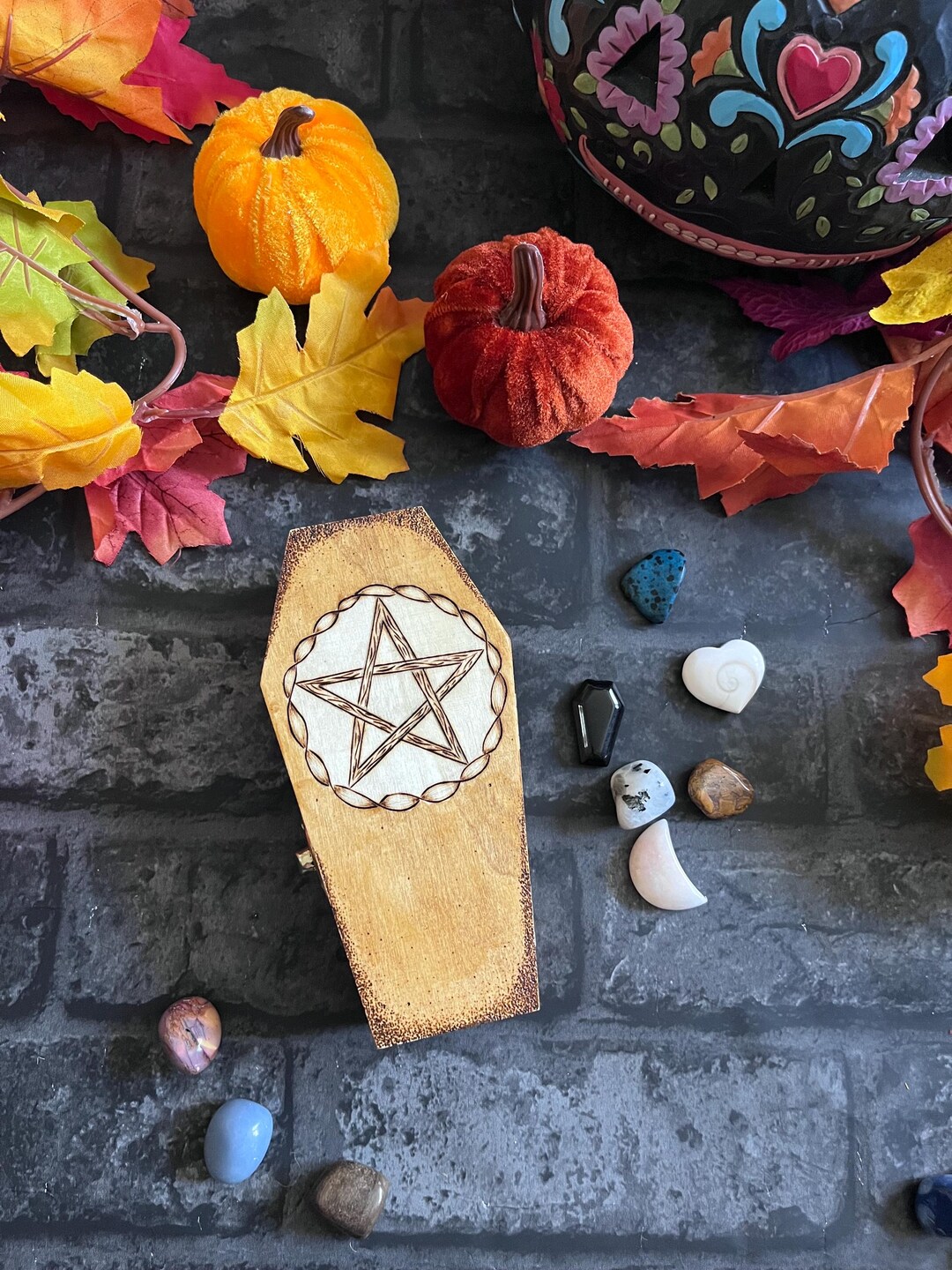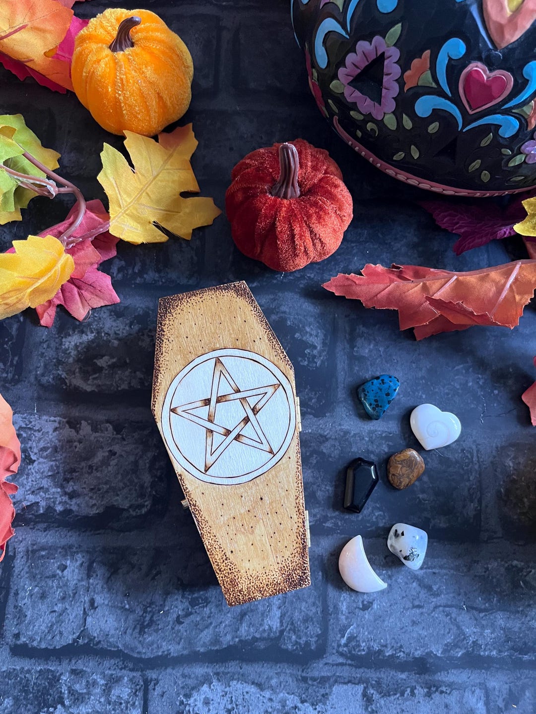 Pentacle Design Pyrography Coffin Shaped Velvet Lined Box - Etsy