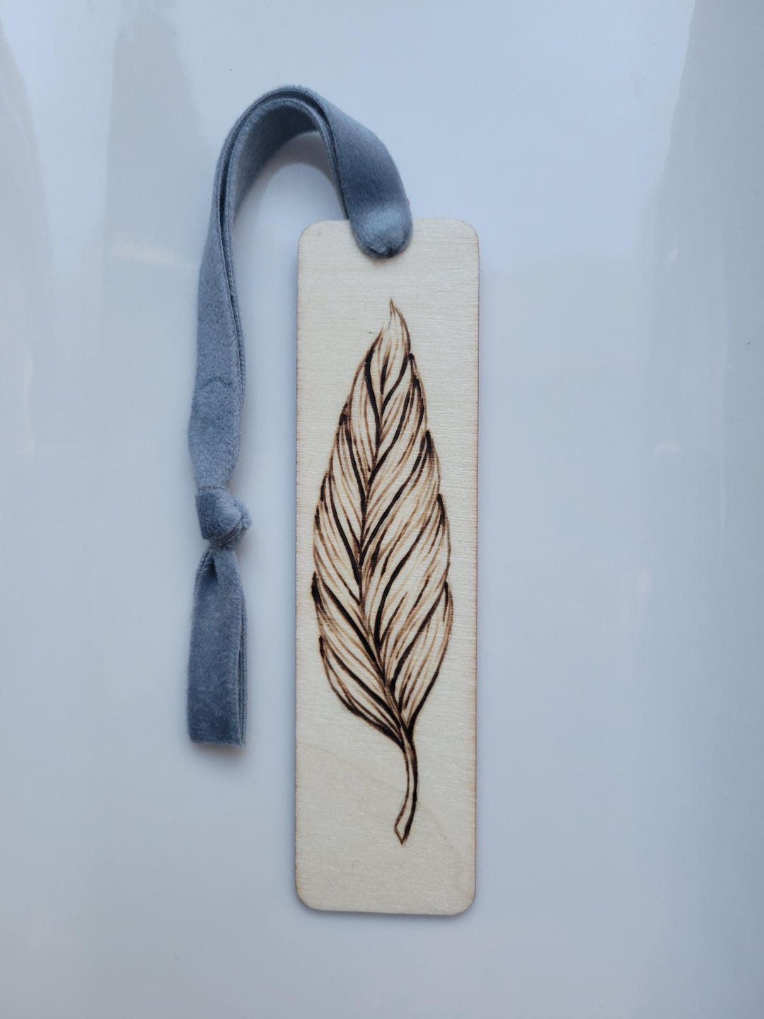 Wood Burn Pyrography Handmade Feather Bookmark Blue Velvet Ribbon - Etsy
