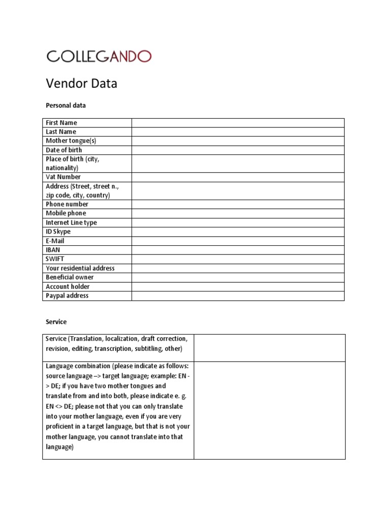 Vendor Information Forms & Sample Template | Word & Excel Templates