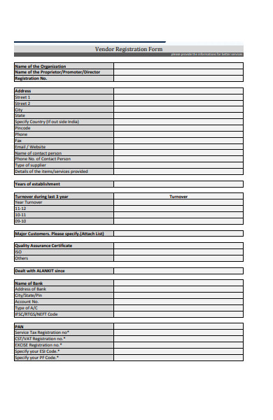 FREE 36+ Vendor Form Samples, PDF, MS Word, Google Docs, Excel