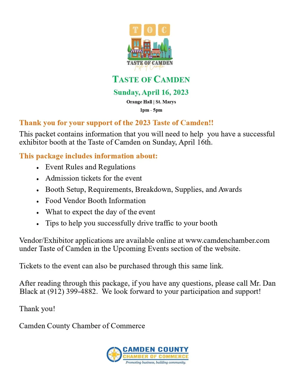 TOC Vendor Packets — Camden County Chamber Of Commerce | Serving Camden ...