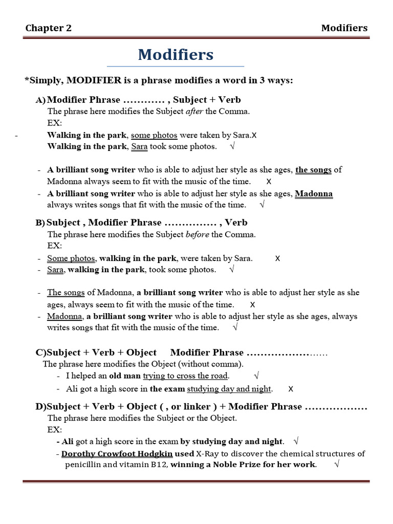 Modifier Rules with Examples | PDF | Verb | Adjective