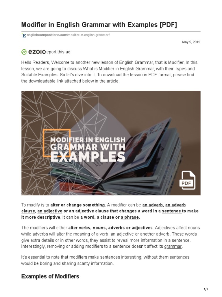 Modifier in English Grammar With Examples PDF | PDF | Adverb | Adjective