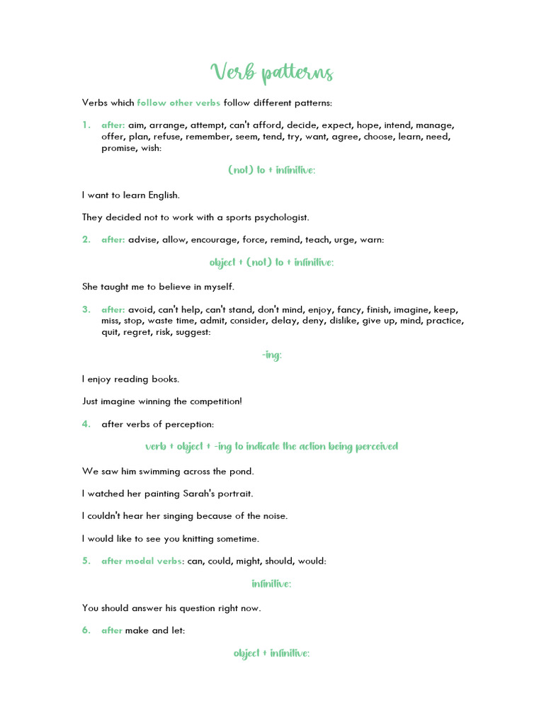 Verb Patterns grammar guide: English ESL worksheets pdf & doc