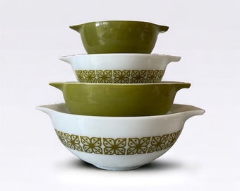 4 Pyrex Nesting Bowls in "Verde" Pattern | Pyrex