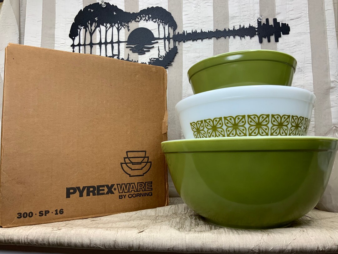 Pyrex Ware “Verde” Mixing Bowl Set in Original Box | Pyrex