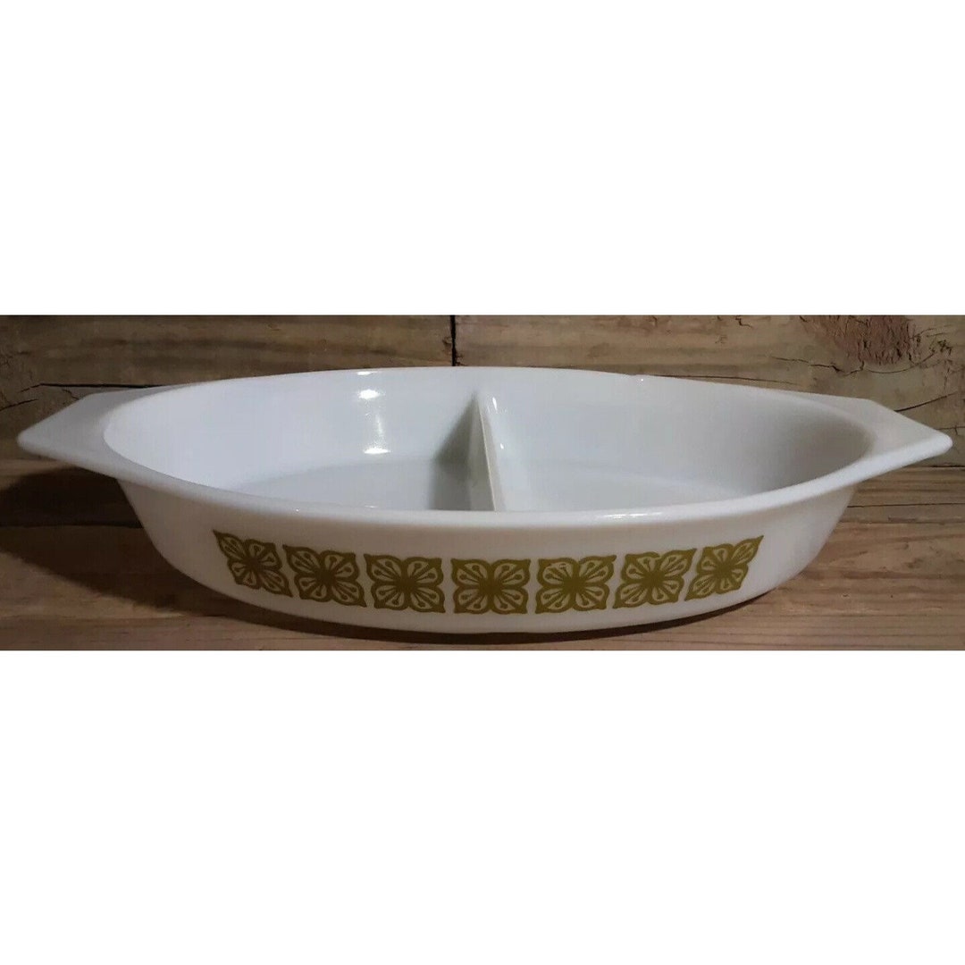 Vtg Pyrex Verde Green Divided Baking Dish/verde Green Olive Branch ...