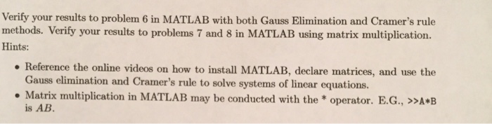 Solved Verify your results to problem 6 in MATLAB with both | Chegg.com