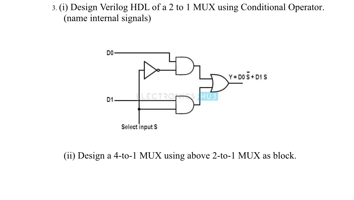 Solved (i) Design Verilog HDL of a 2 to 1 MUX using | Chegg.com