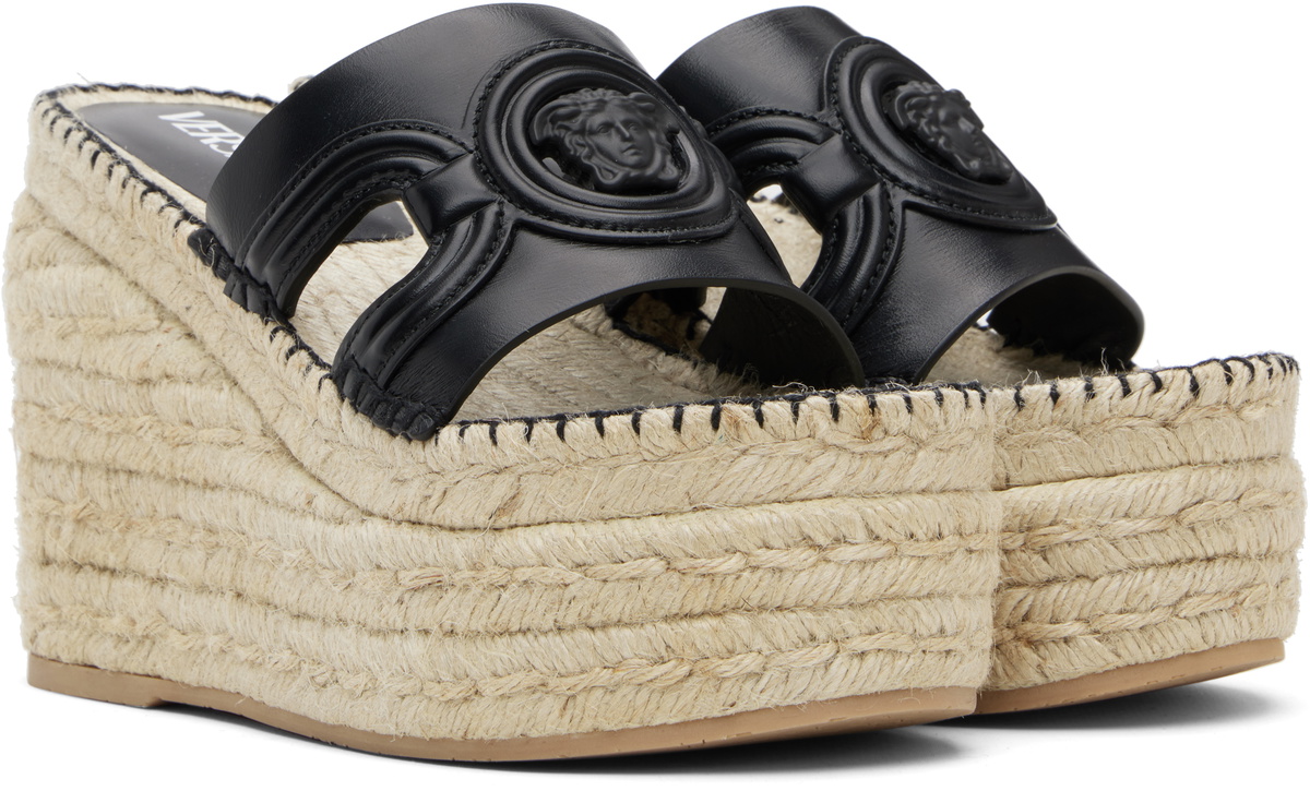 Versace Black Medusa Platform Espadrilles Heeled Sandals Versace