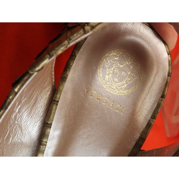 New Versace Snake Bronze Signature Medusa Embellished Sandals It 37.5 ...