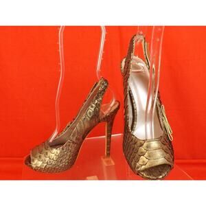 Versace | Shoes | Nib Versace Bronze Python Leather Peep Toe Bow Logo ...