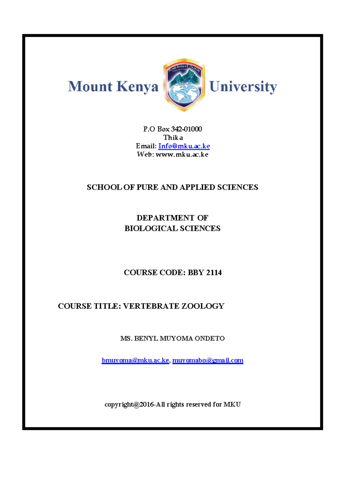 BBY 2114: Comprehensive Notes on Vertebrate Zoology Module - Studocu