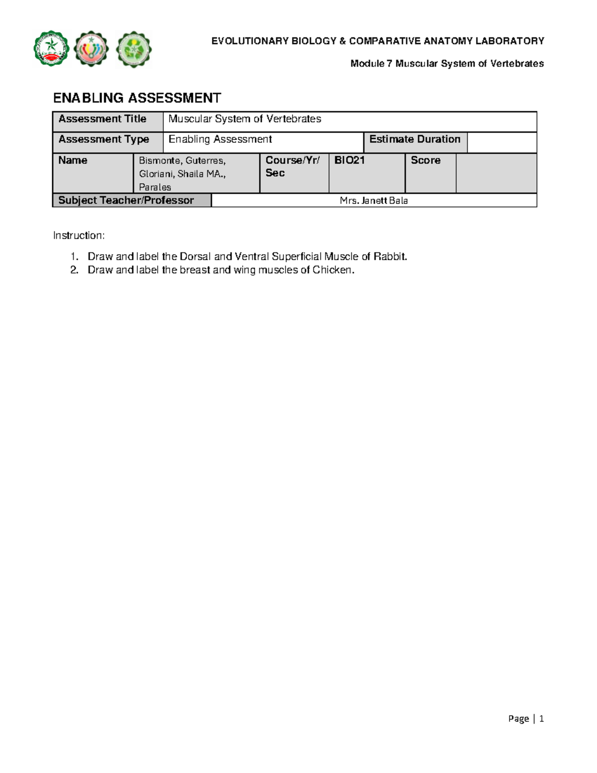 DLP6-Understanding Vertebrate Animals Lesson Plan - Studocu