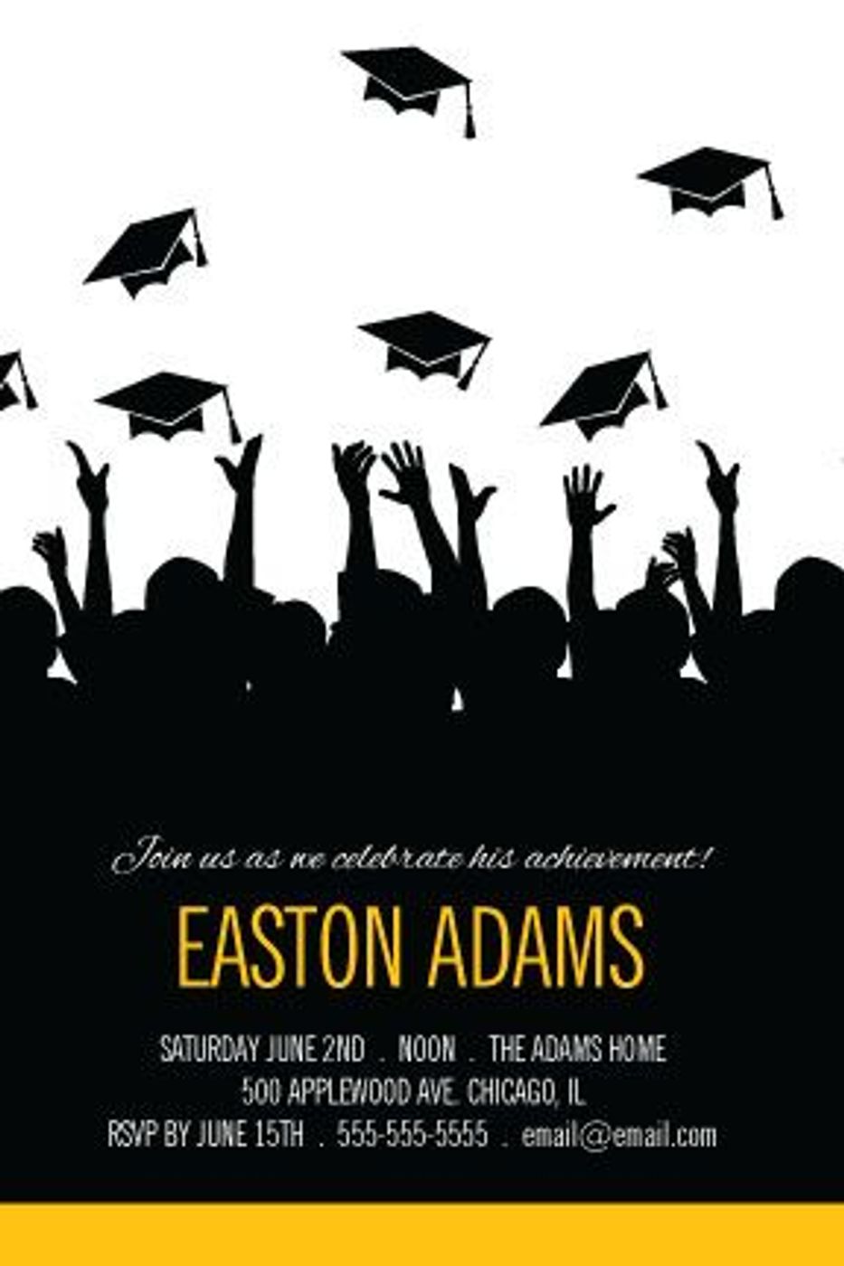 Yellow Gold Tossing Caps Vertical Graduation Invitations - 5 x 7 ...