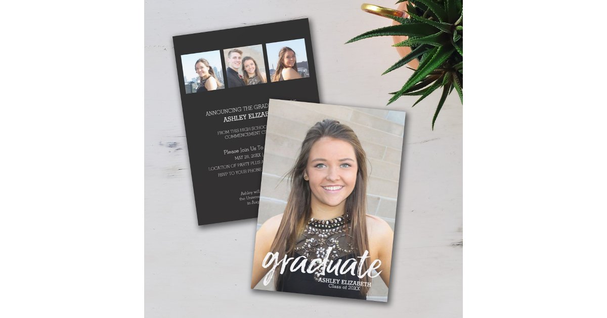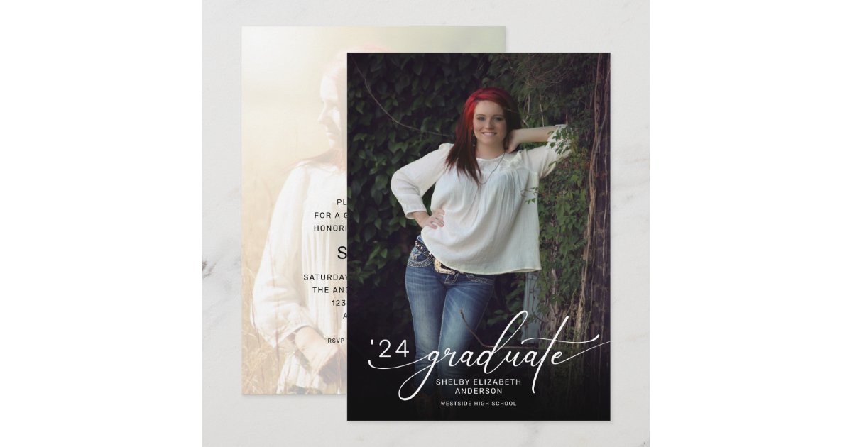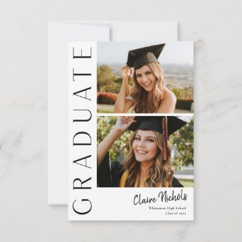 Modern Script 2 Photo Vertical Graduation Invitation | Zazzle