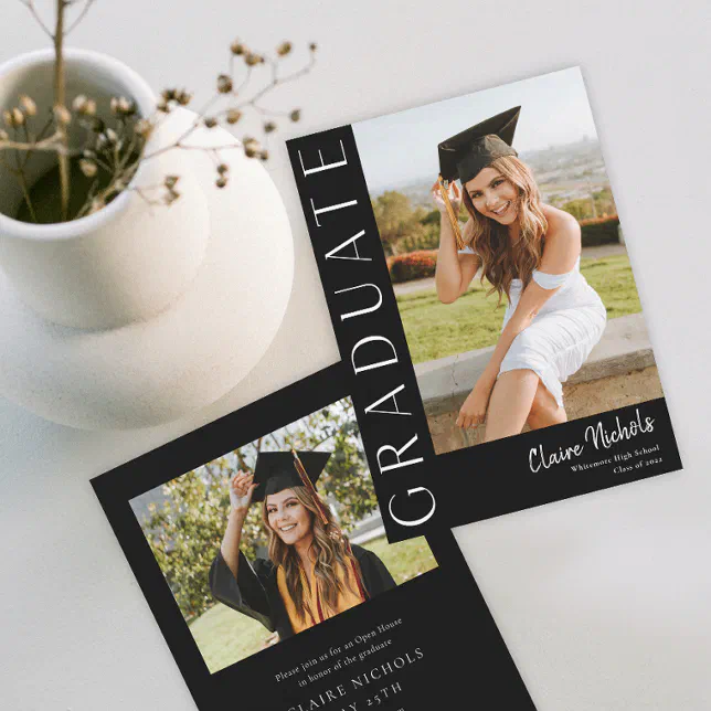 Modern Vertical Black and White Photo Graduation Invitation | Zazzle