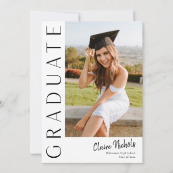 Modern Vertical Typography Photo Graduation Invitation | Zazzle