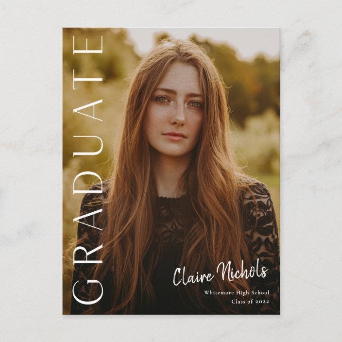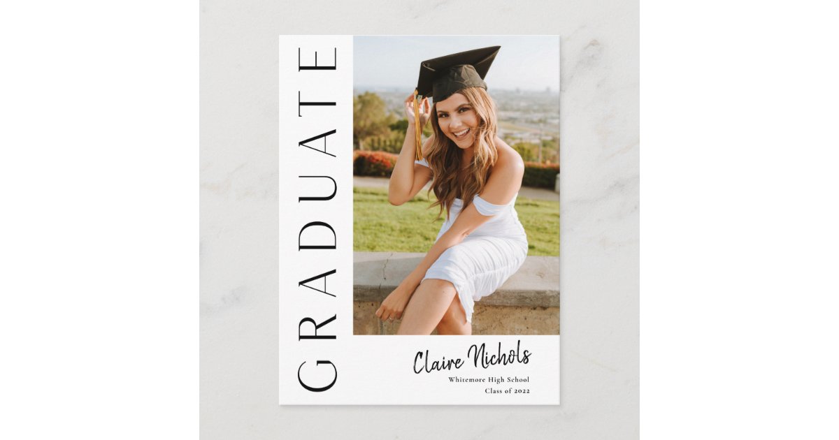 Bold grad vertical photo graduation invitation postcard | Zazzle