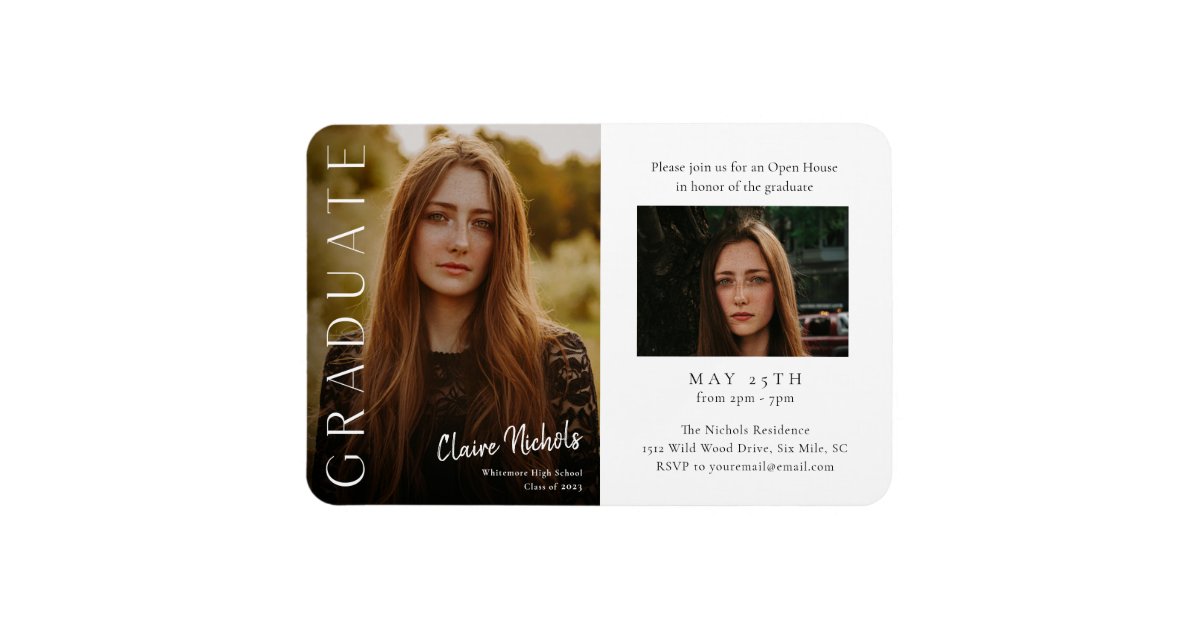 Modern Vertical Photo Graduation Invitation Magnet | Zazzle