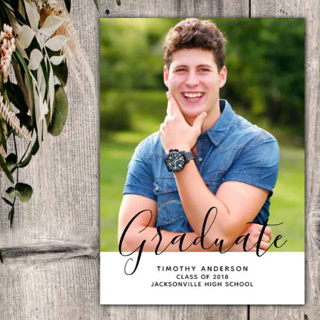 Bold grad vertical photo graduation invitation postcard | Zazzle.com